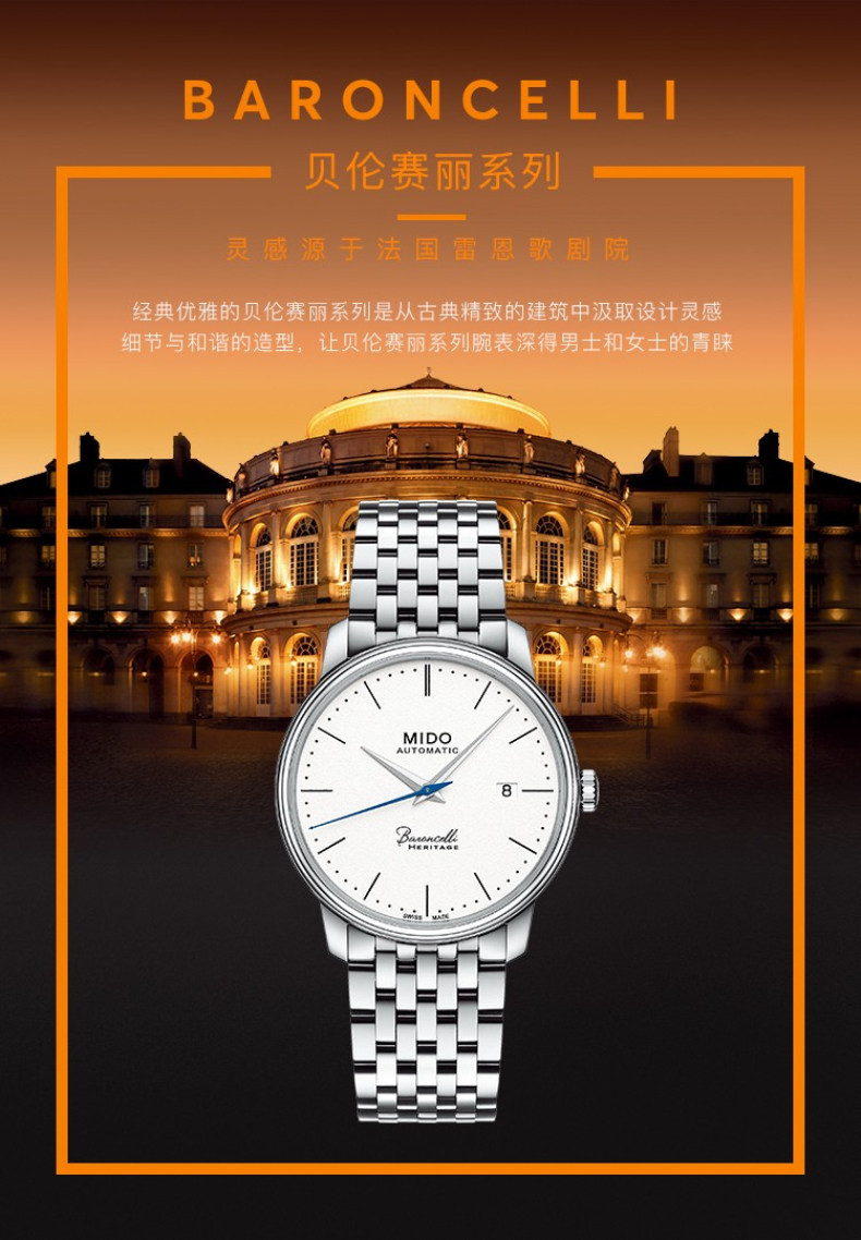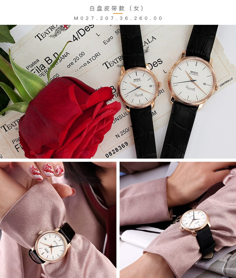 • 手表品牌:美度(MIDO) • 手表型号:M027.207.36.260.00 • 手表系列:Baroncelli 贝伦赛丽 • 手表毛重:1.2kg • 手表产地:瑞士 • 手表表扣:针扣 • 手表表带:牛皮 • 手表表盘:圆形 • 手表功能:日期显示 • 手表机芯:自动机械 • 适用人群:女士 • 防水等级:30米 • 手表表底:透底 • 手表风格:时尚