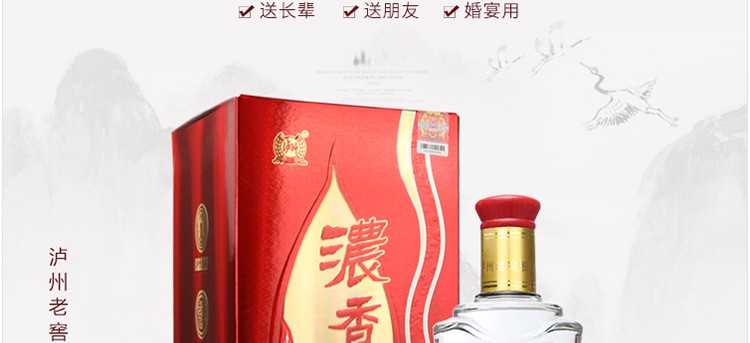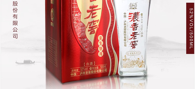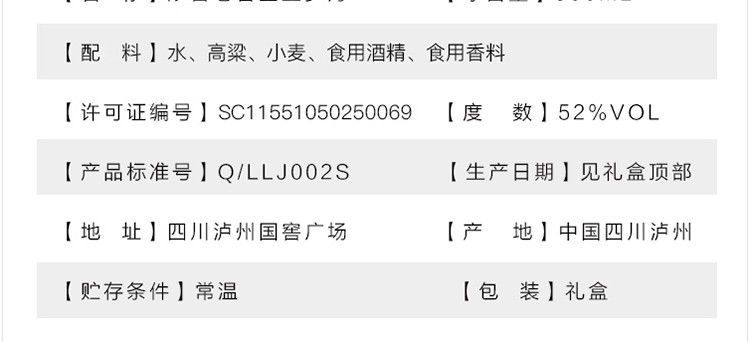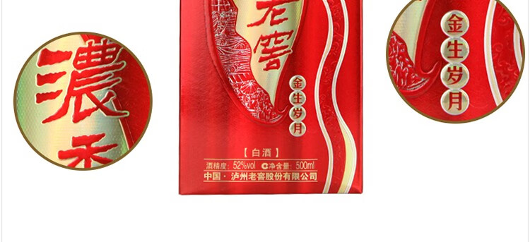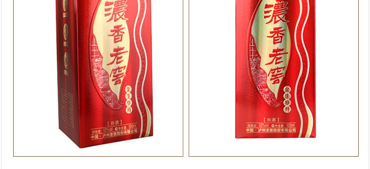 • 白酒品牌: 泸州(LUZHOU) • 白酒毛重:1.0kg • 白酒包装:瓶装 • 白酒度数:50度及以上 • 白酒香型:浓香型 • 白酒容量:500-749mL