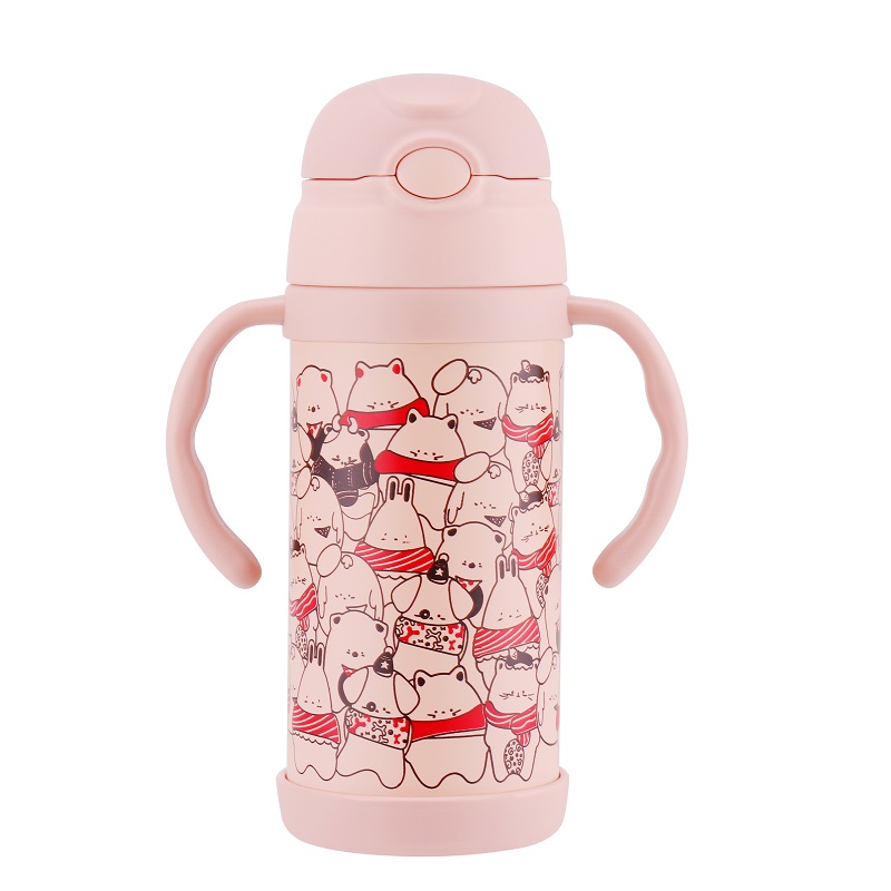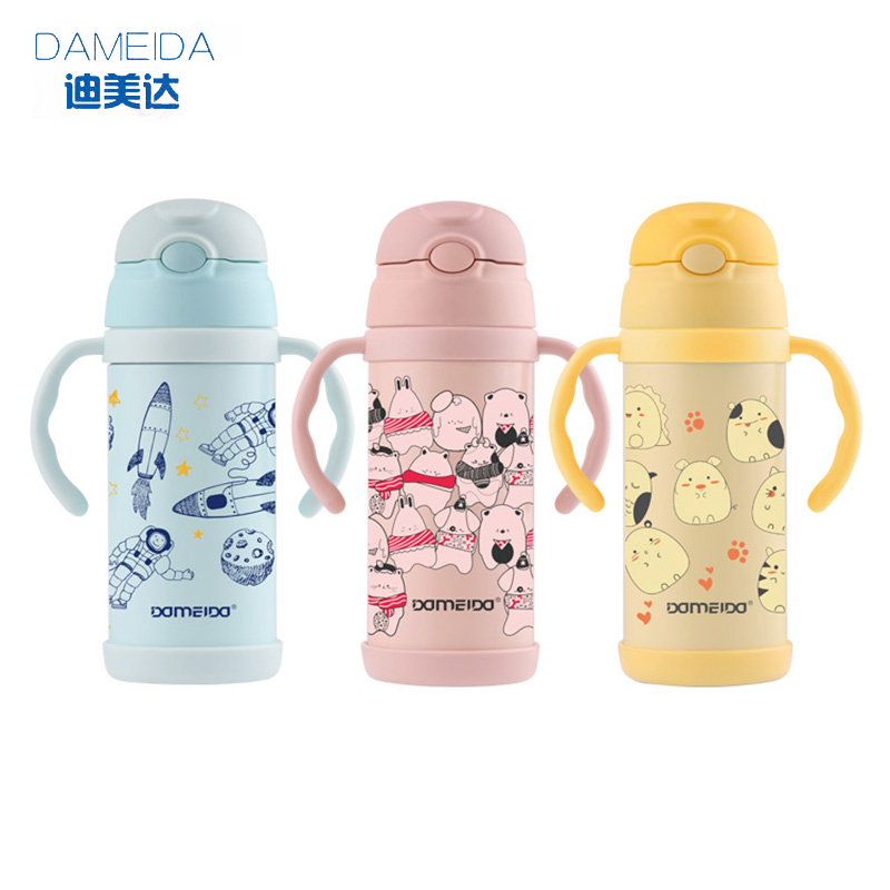 迪美达DAMEIDA 儿童水杯304不锈钢保温杯吸管杯两用水壶水杯350ml-粉色
