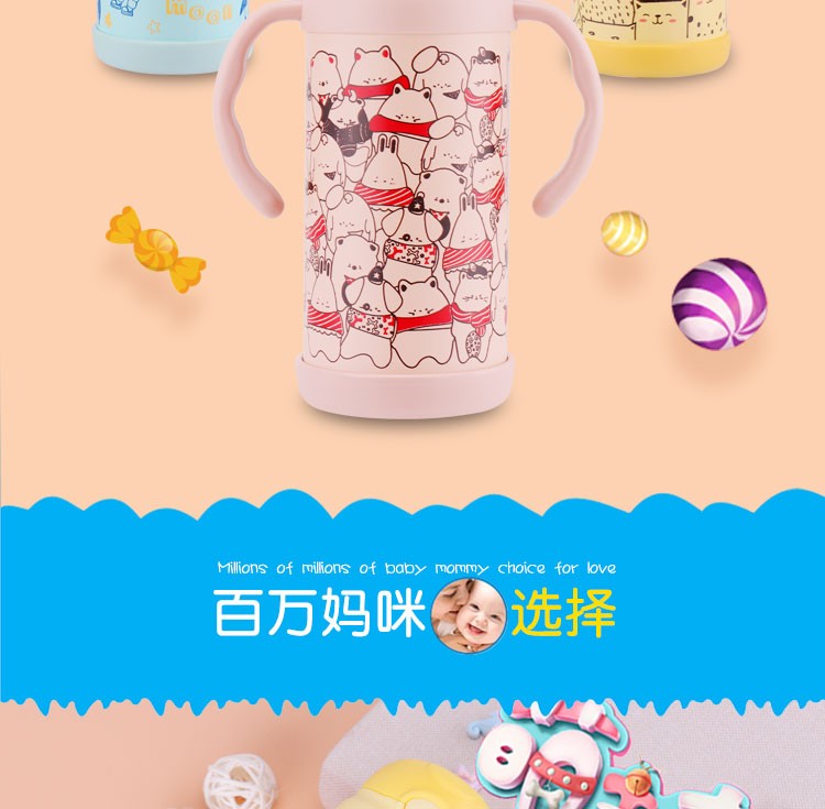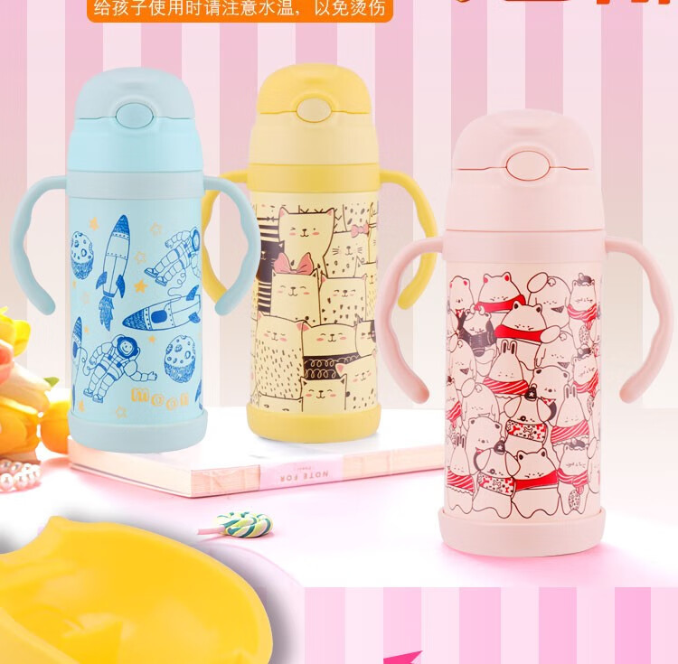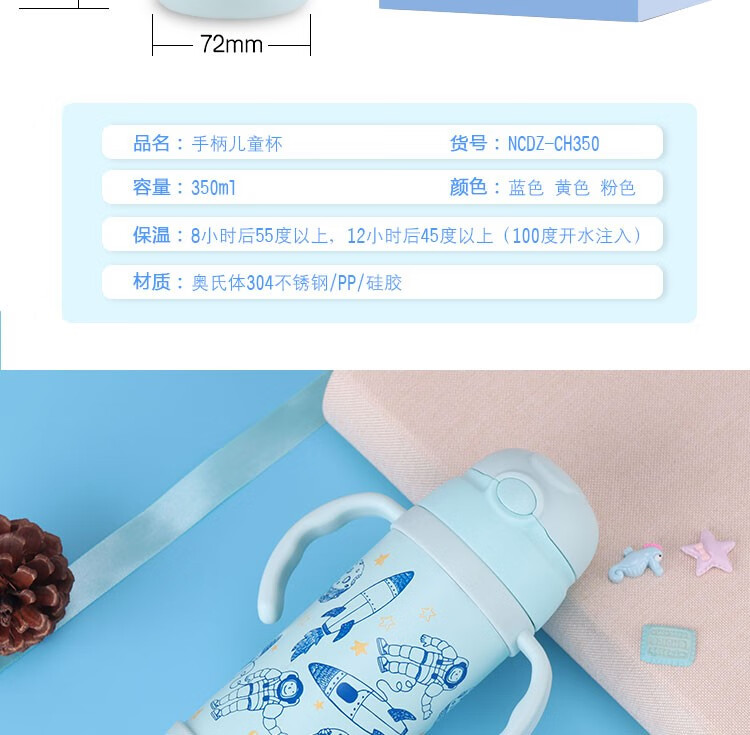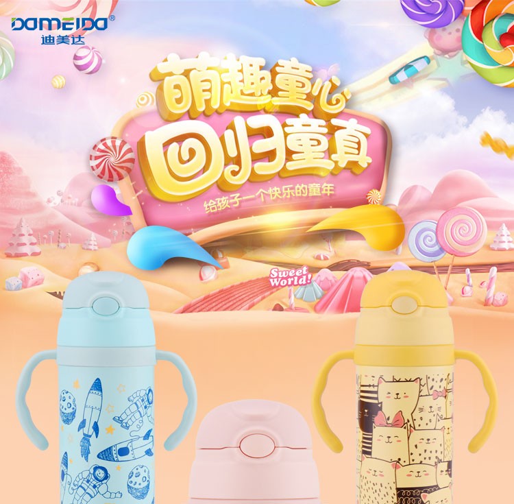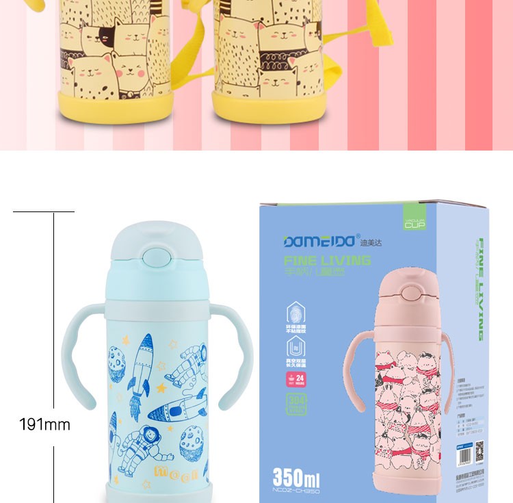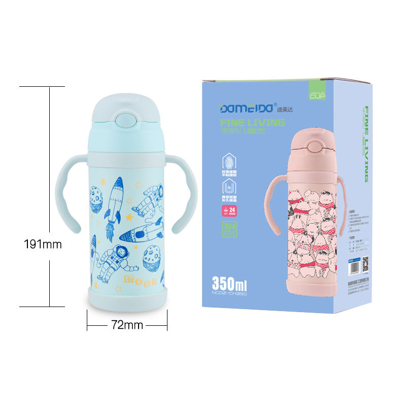 迪美达DAMEIDA 儿童水杯304不锈钢保温杯吸管杯两用水壶水杯350ml-浅蓝色