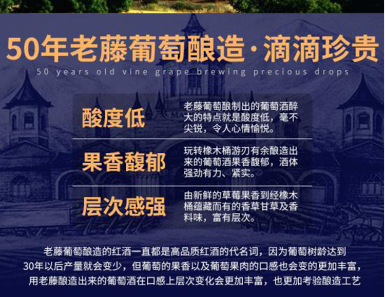 • 商品毛重:1.5kg • 商品类别:红葡萄酒 • 商品容量:750mL • 商品包装:瓶装 • 葡萄品种:其它 • 适用场景:家庭聚会,收藏,礼节拜访,商务宴请,婚礼婚宴,情侣约会,自斟自饮,闺蜜私语,派对活动 • 商品甜度:干型 • 商品口感:饱满 • 商品特性:精品葡萄酒 • 国产/进口:进口