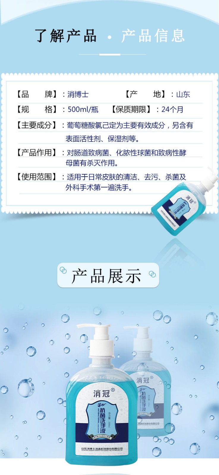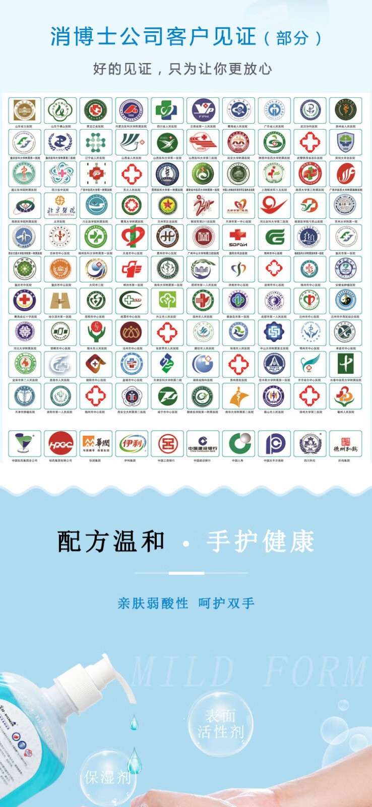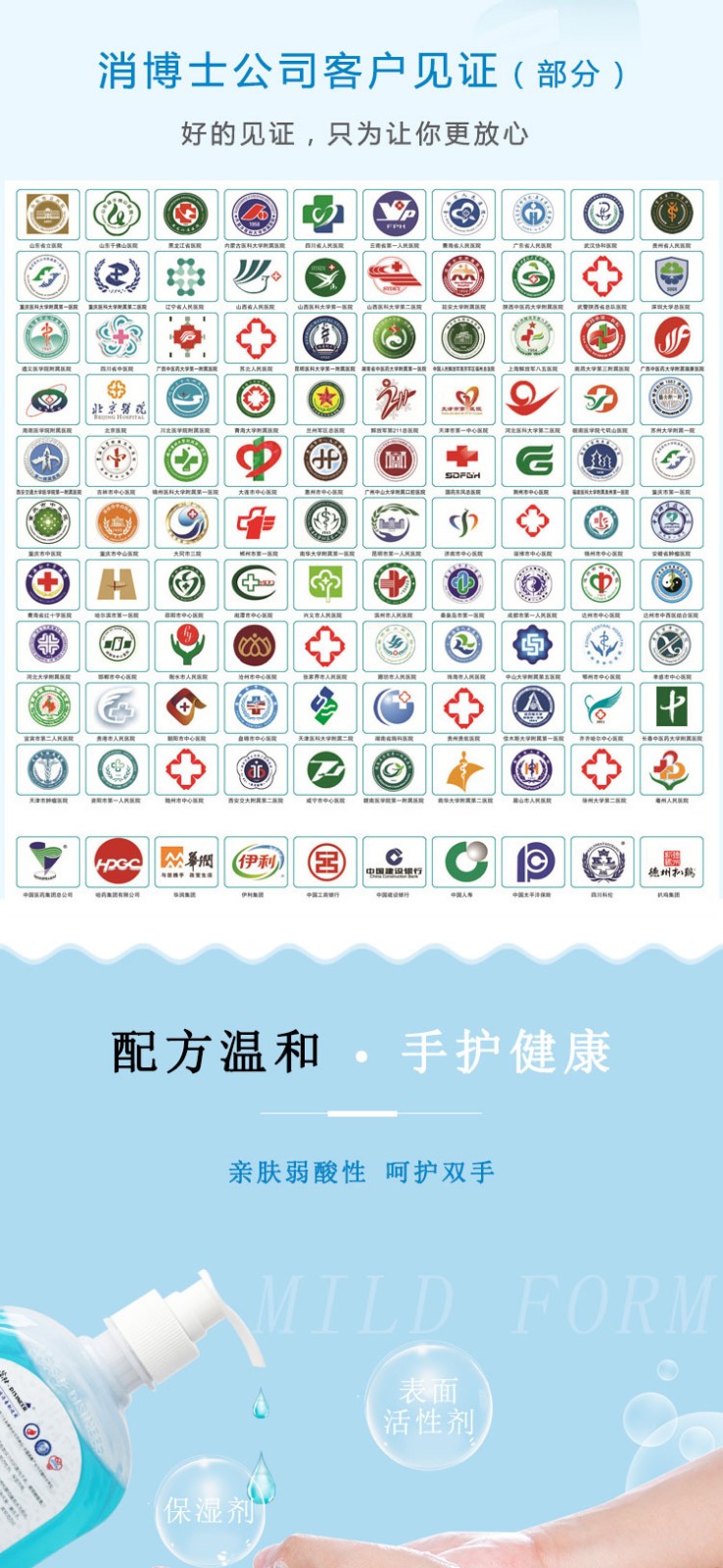 • 商品品牌: 消博士 • 商品毛重:500.00g • 商品功效:清洁,除菌,清爽 • 适用人群:通用 • 净含量:450mL以上 • 商品类别:水洗(液体) • 适合肤质:混合性