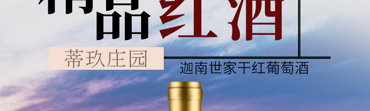 -商品品牌:蒂玖庄园 DWINEMANOR -商品类别:红葡萄酒 -国产/进口:进口 -商品包装:瓶装 -酒精度:13.5度 -单支容量:750 -葡萄品种:赤霞珠(Cabernet Sauvignon) -适用人群:18周岁以上、成人 -糖分类型:干型 -酿造工艺:单一葡萄品种 -适用场景:新手入门、婚礼婚宴、团圆小酌、自斟自饮、日常配餐、商务宴请