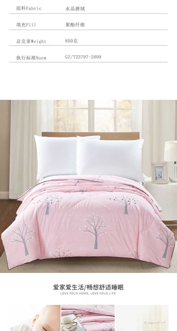• 商品毛重:1.0kg • 被套织造工艺:其它 • 商品面料:聚酯纤维 • 商品重量:1.1-2斤 • 商品尺寸:150*200cm • 填充物净重:0.5kg(不含)以内 • 适用季节:夏季