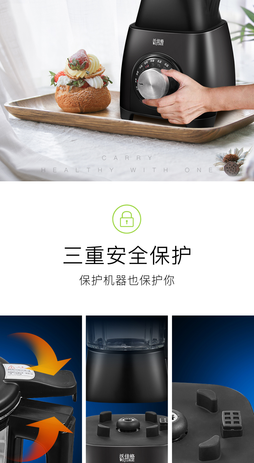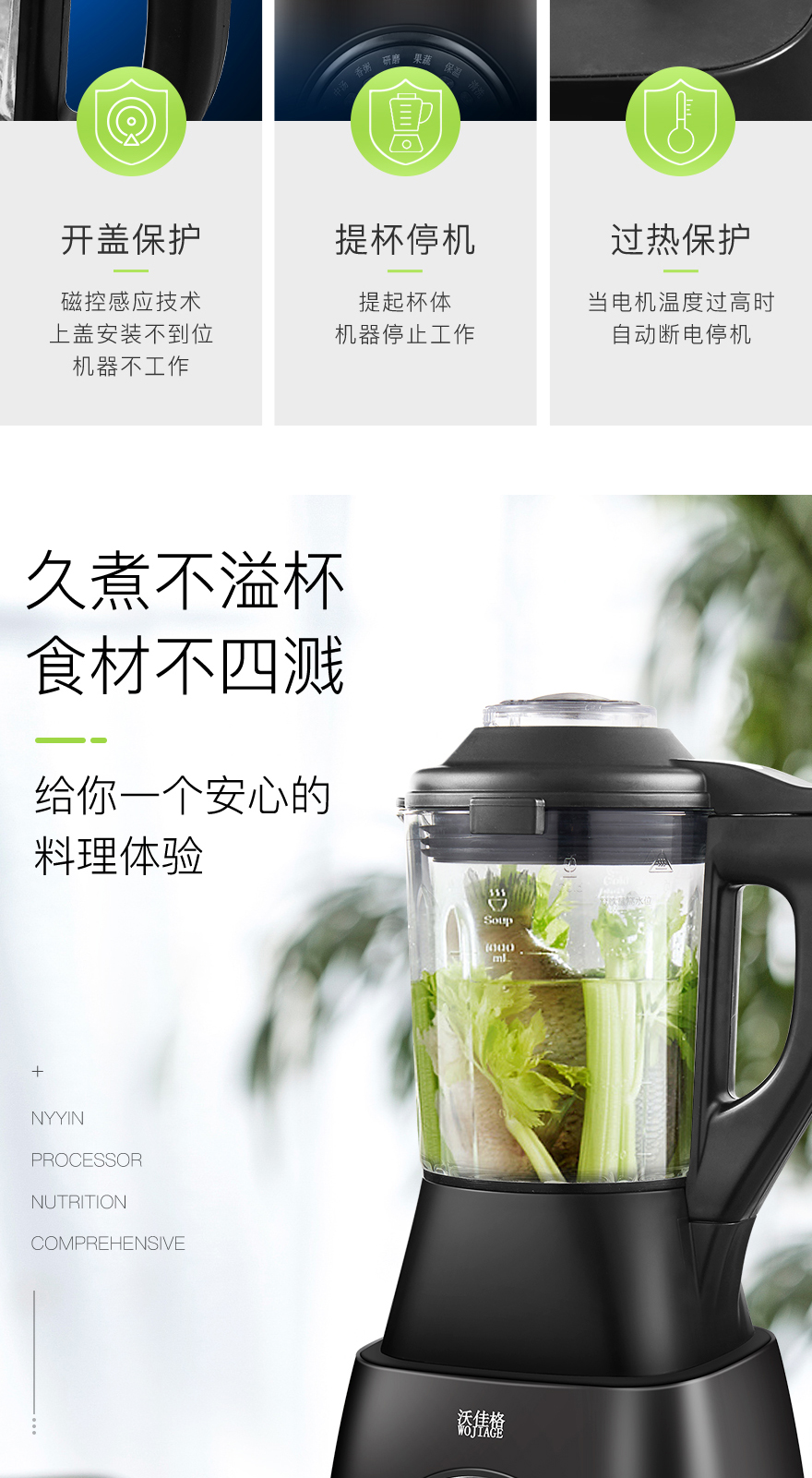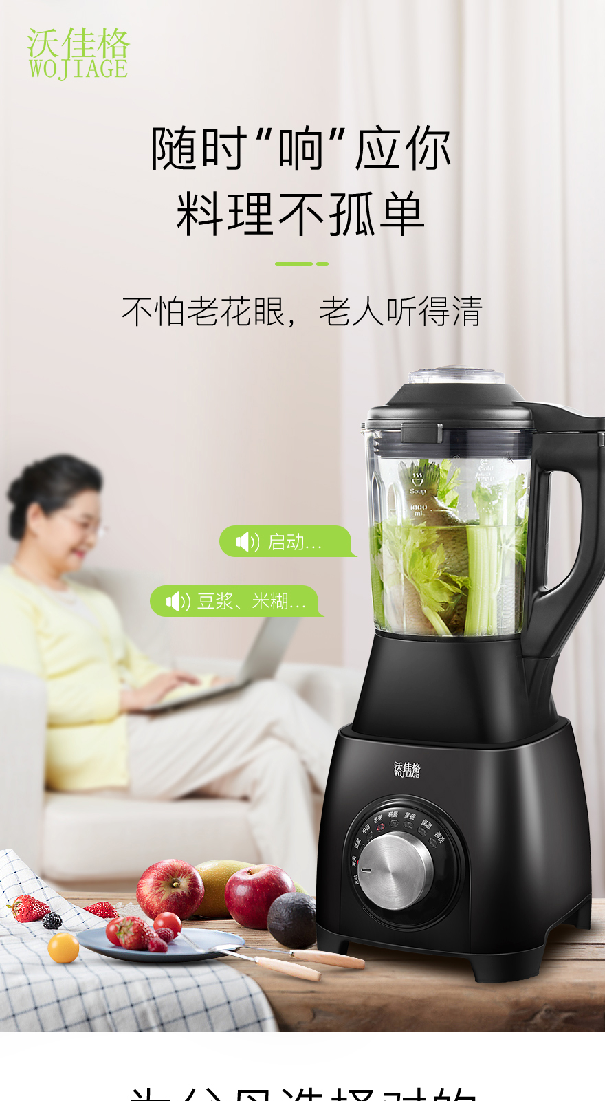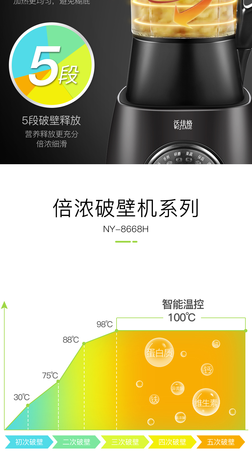WOJIAGE沃佳格 智能语音提示加热破壁机全自动养生豆浆搅拌奶昔婴儿辅食机大功率单台双层包装彩包NY-8668MNA