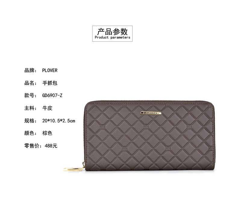 • 商品品牌:啄木鸟PLOVER • 商品型号:GD6907-Z • 商品毛重:0.65kg • 商品产地:中国大陆 • 闭合方式:拉链 • 商品材质:牛皮 • 内部结构:卡位,零钱位 • 流行元素:压花 • 适用人群:青年 • 适用场景:商务 • 商品图案:格子 • 商品颜色:棕色