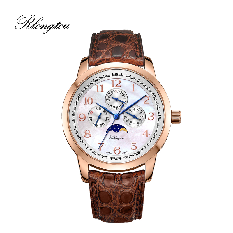 • 手表名称:浪陀(Rlongtou) • 手表毛重:365.00g • 手表产地:中国大陆 • 手表型号:103M-P-A • 手表表带:鳄鱼皮 • 手表功能:日期显示,星期显示,月份显示,月相 • 手表机芯:石英 • 手表表径:36-40mm • 手表风格:商务,休闲风,时尚,复古风 • 手表表底:不透底 • 防水等级:30米 • 手表表壳:精钢
