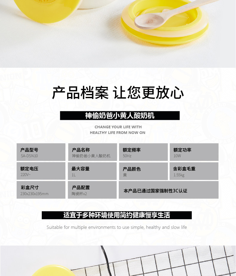 • 商品品牌:小黄人(DESPICABLE ME MINION MADE) • 商品型号: SA-DSN10 • 商品产地: 中国大陆 • 颜色分类: 柠檬黄 • 商品容量: 501ml-1000ml(含1000ml) • 内胆材质: 陶瓷 • 控制方式: 电脑式 • 是否支持智能分杯: 支持 • 智能类型: 其他智能 • 采购地: 中国大陆