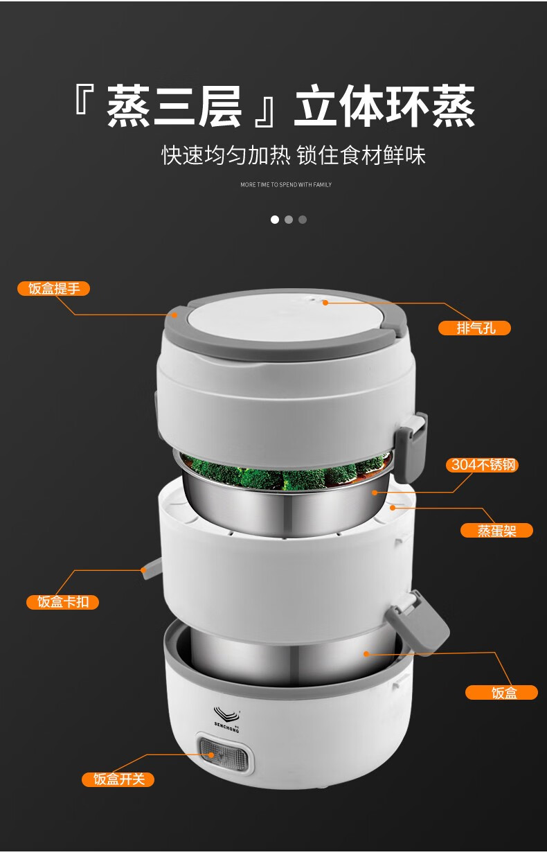 • Brand: SHENCHONG • Model: SC-D008 • Capacity: 1.8L • Liner material: 304 stainless steel • Functions: Multi-function • Layers: 3 Layers