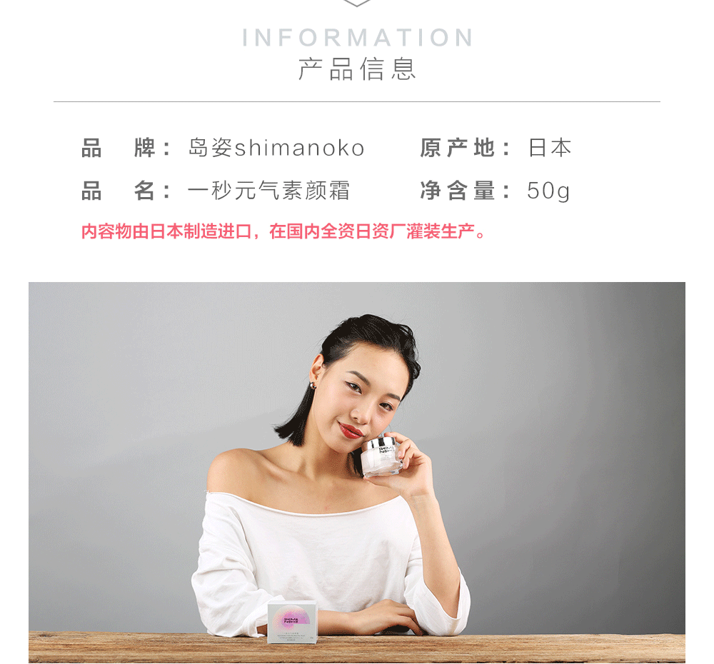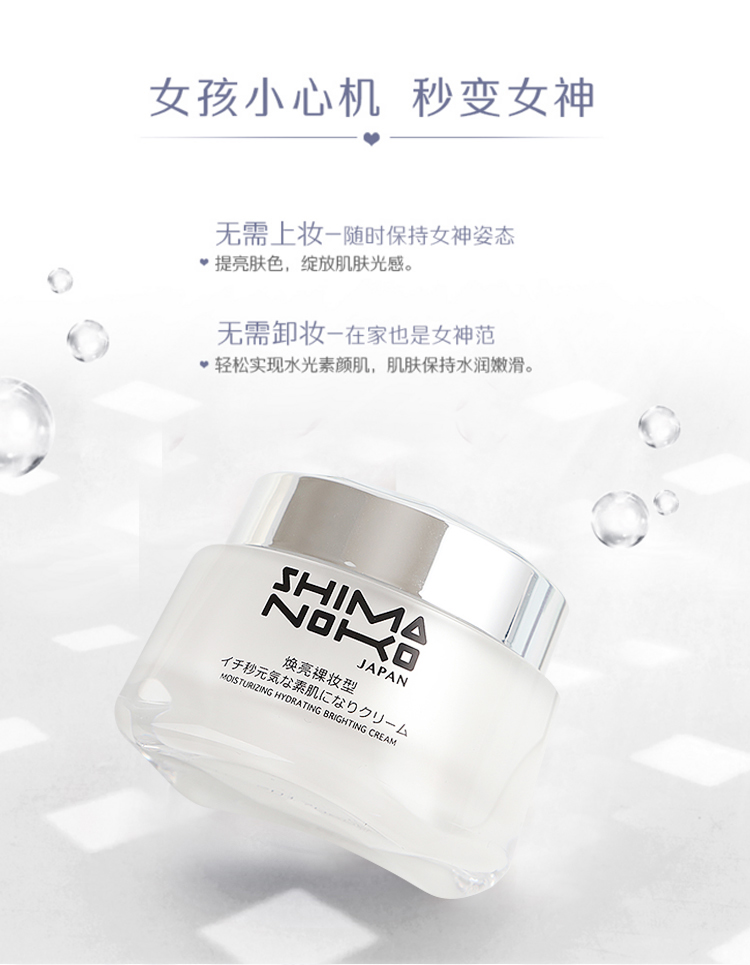 -Brand: SHIMANOKO -Category: Cream -Suitable For Skin Types: All Skin Types -Efficacy: Brighten skin tone, hydrate, moisturize -Net content: 50ml