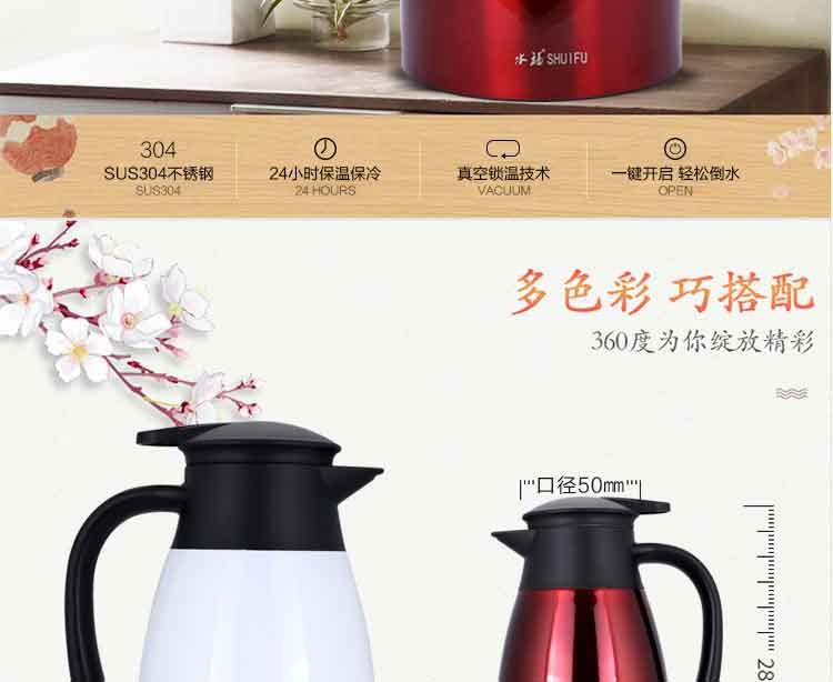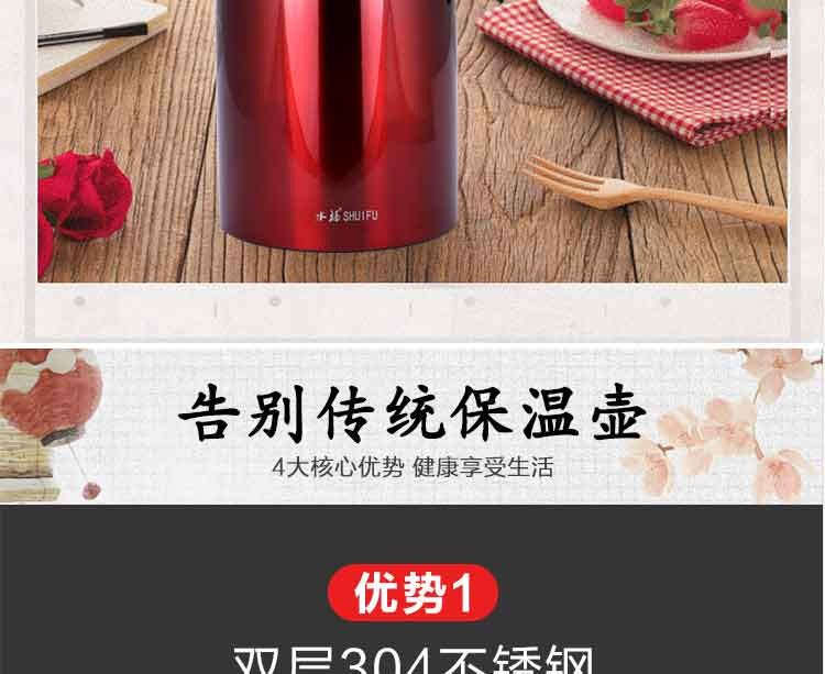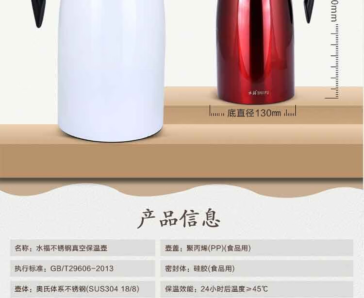 • Brand: SHUIFU • Gross weight: 0.51kg • Material: 304 stainless steel • Capacity: 1.6-2L • Keep warm time: 12.1-24 hours • Category: Warm Bottle/Warm Pot • Function: Other • Domestic/Import: Domestic