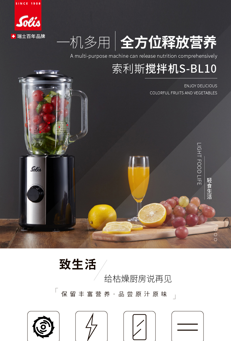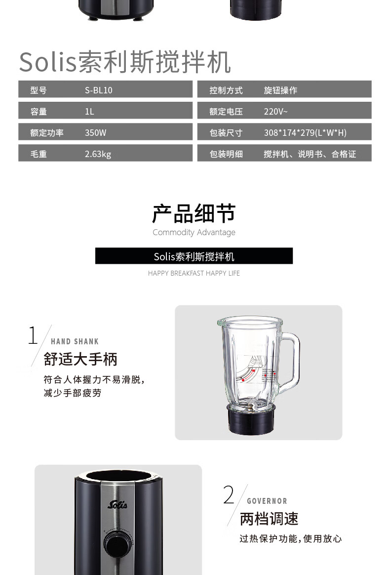 • 商品型号:S-BL10 • 商品毛重:2.85kg • 商品产地:中国大陆 • 操控方式:旋钮式 • 产品类别:料理/辅食机 • 基础功能:搅拌,榨汁,碎肉,研磨,碎冰 • 特色功能:婴儿辅食