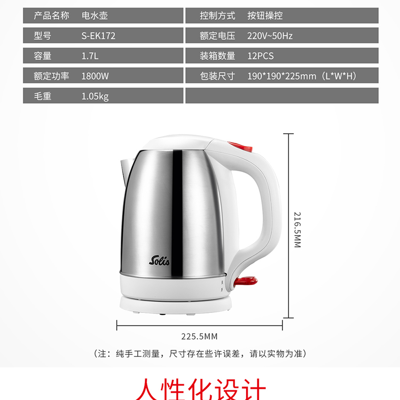 • Product Brand: SOLIS • Product Weight: 1.05kg • Product Material: Single-layer stainless steel • Product category: Electric hot water bottle