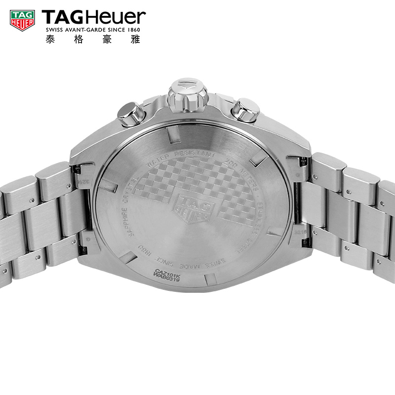 ·手表品牌: 泰格豪雅(TAGHeuer) ·手表系列: F1 ·手表型号:CAZ101K.BA0842 ·手表毛重:2.42kg ·手表产地:瑞士 ·手表表扣:折叠扣 ·手表表带:金属 ·手表表盘:圆形 ·手表功能:日期显示,计时码表,大三针 ·手表机芯:石英 ·适用人群:男士 ·手表风格:商务,休闲风,运动风,时尚 ·防水深度:200米 ·手表表底:不透底 ·手表表壳:精钢
