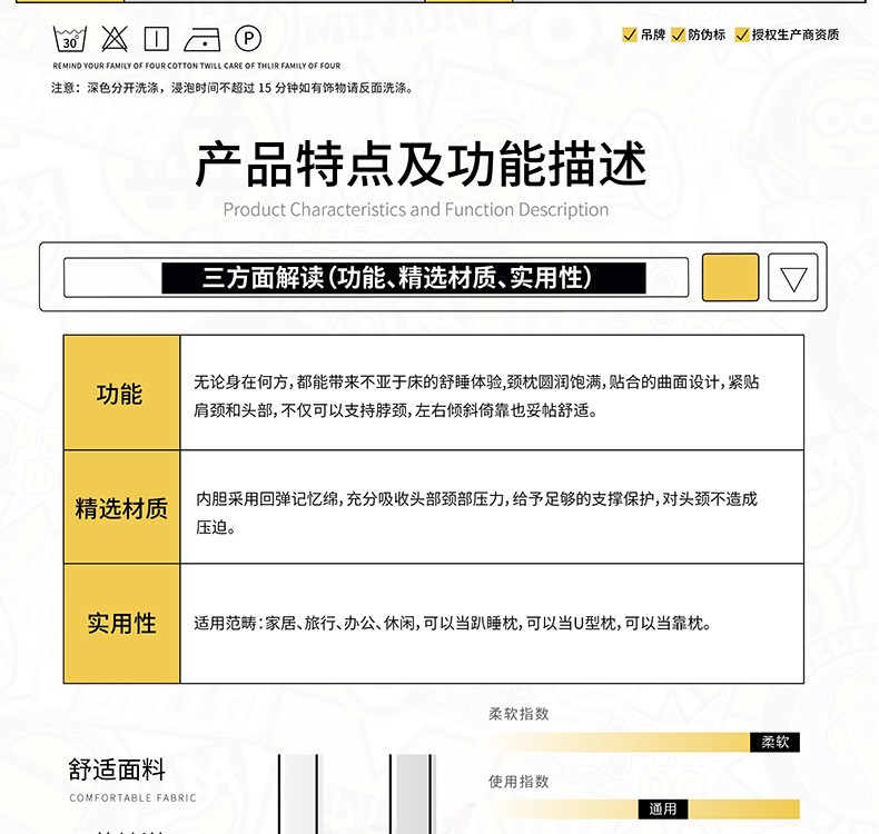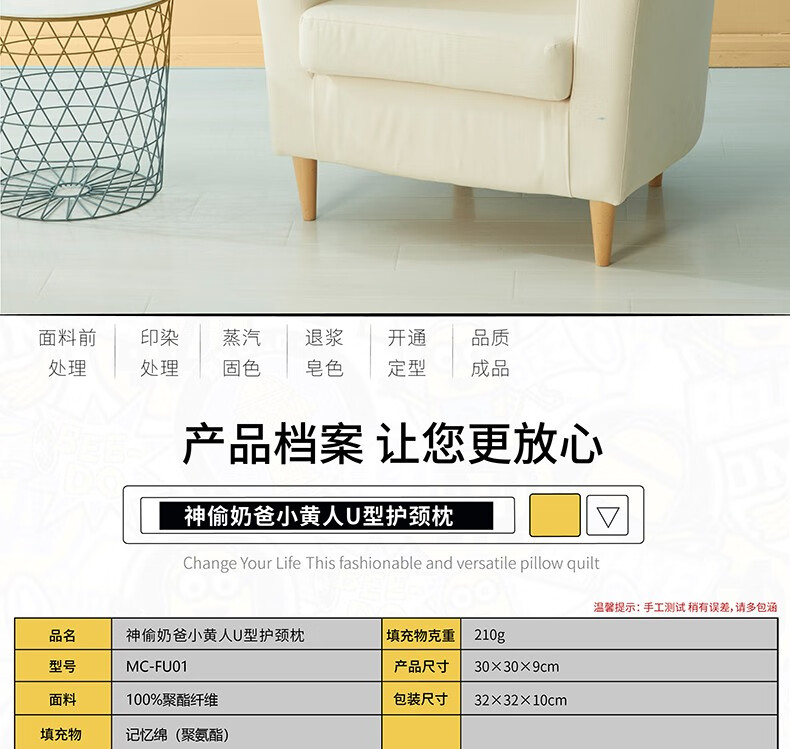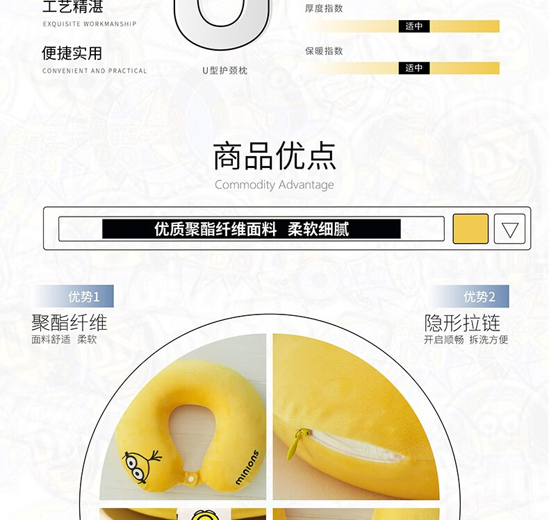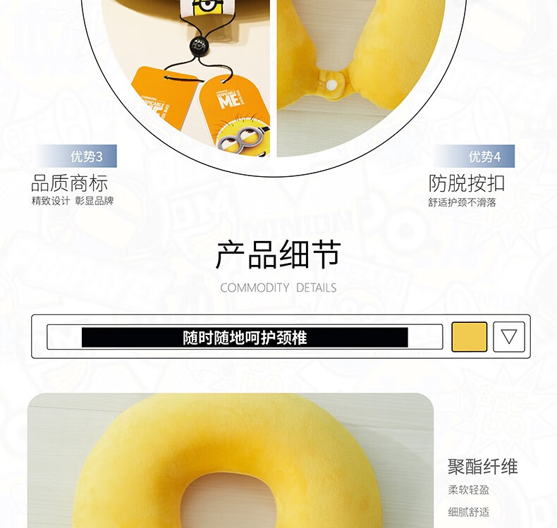 • 商品品牌:小黄人(DESPICABLE ME MINION MADE) • 商品型号:MC-FU01 • 商品毛重:400.00g • 商品面料:化纤 • 填充物:记忆棉 • 商品类别:颈枕,U型枕 • 商品特点:可拆卸 • 商品尺寸:其它 • 商品图案:卡通 • 适用场景:办公室,居家,汽车