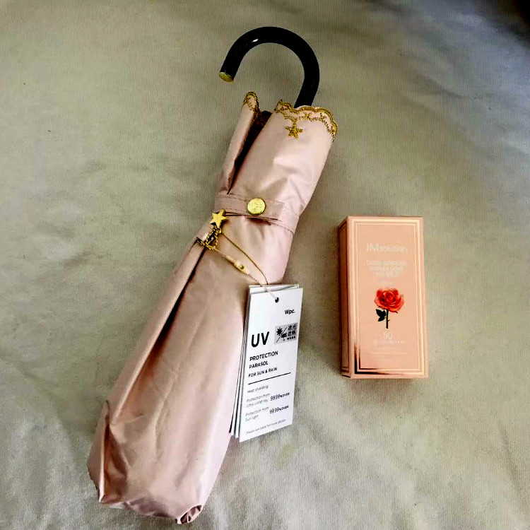 WPC801-972刺绣星星遮光遮热人气防晒彩胶轻量折叠女士太阳伞UV99%遮阳伞 ZZ1075509662-粉色
