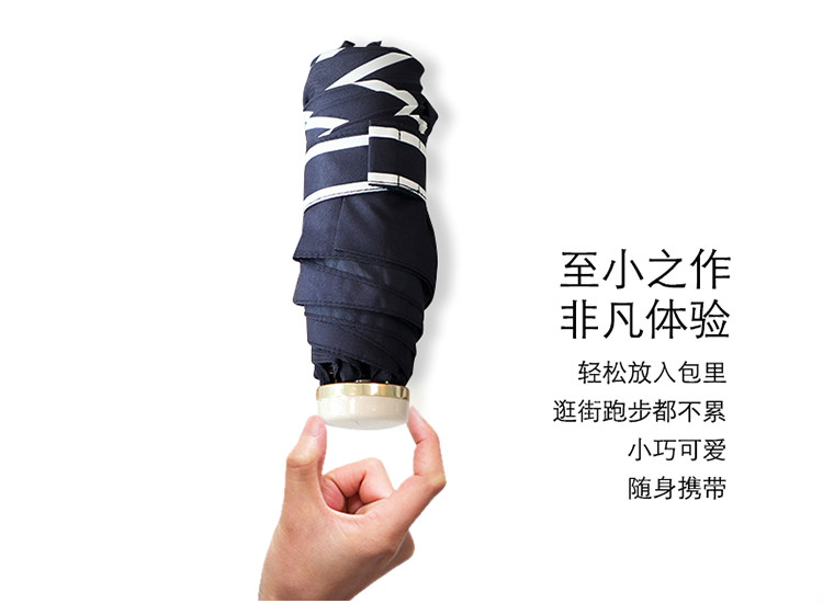 -雨伞毛重:500.00g -雨伞产地:中国大陆 -雨伞类型:三折伞 -打开方式:非自动伞 -伞面涂层:彩胶 -伞面材质:聚酯纤维 -雨伞图案:纯色,条纹