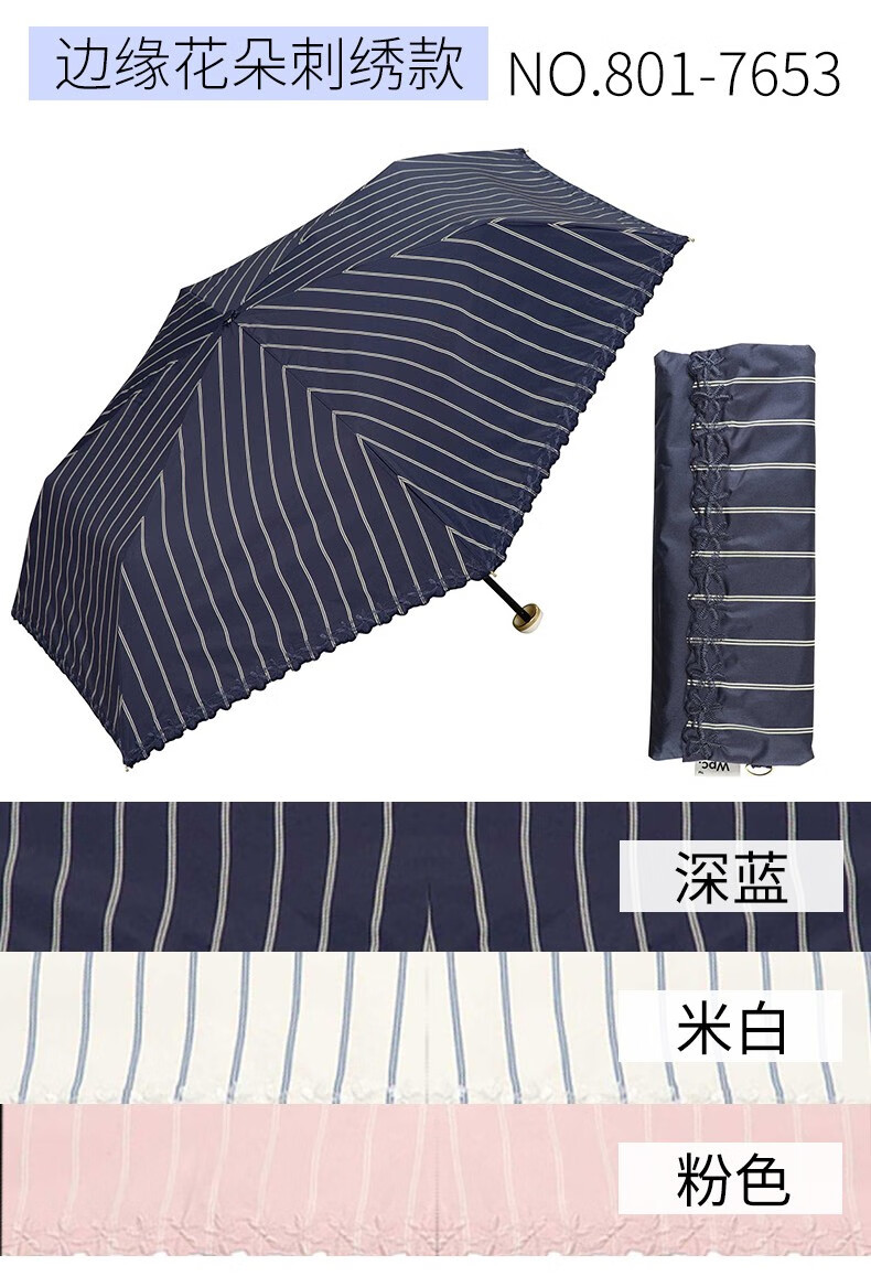 Japanese WPC Anti-ultraviolet Umbrellas UV 99% Navy Wind 801-6340 Striped Stars ZZ1075509665-Black