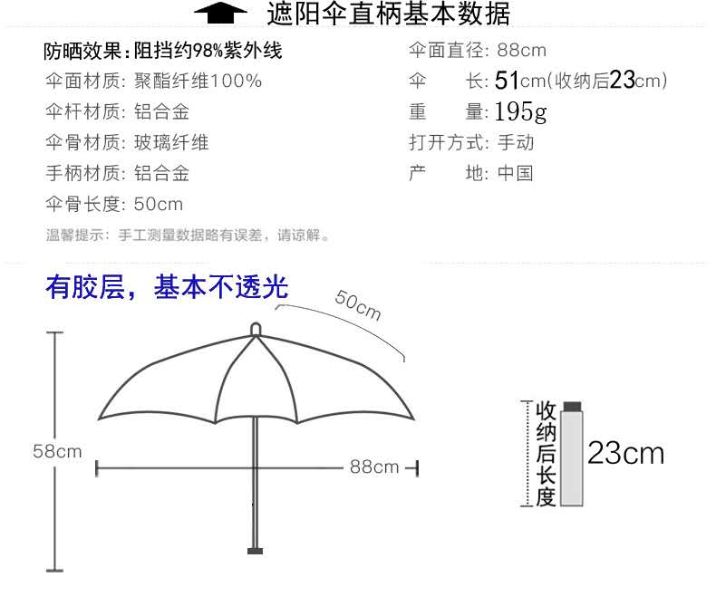 -Umbrella surface material: polyester fiber