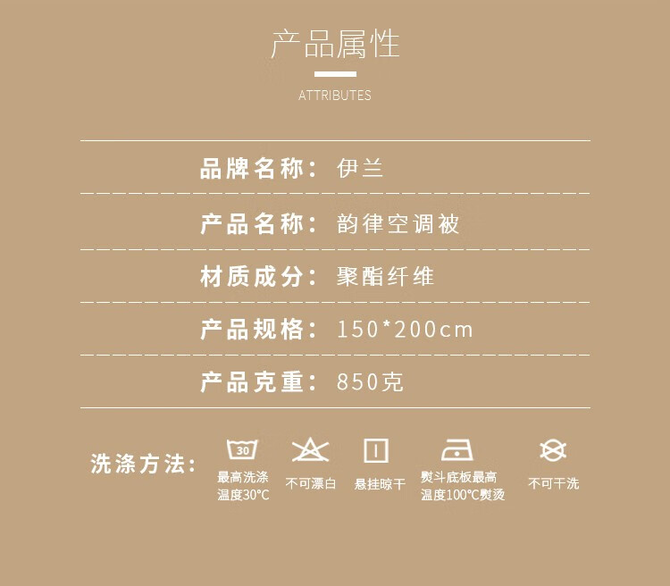 • 商品品牌: 伊兰 • 商品型号:YL-3035 • 商品毛重:3.0kg • 商品产地:中国大陆 • 商品面料:其它 • 商品重量:其它 • 适用人数:单人 • 商品尺寸:150*200cm • 填充物净重:1.5(含)-2.0(不含)kg • 适用季节:四季